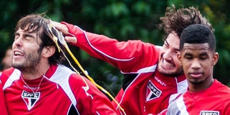 Saat ingin melakukan sesi foto sebelum latihan, dari arah belakang, Pato diam-diam memecahkan telor mentah tersebut ke kepala Kaka. Sontak, Kaka pun tampak terkejut dengan aksi Pato tersebut.
