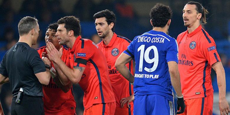 Pertandingan leg kedua 16 besar Liga Champions antara Chelsea dan PSG itu berakhir 2-2. Semua gol terjadi setelah penyerang PSG Zlatan Ibrahimovic diganjar kartu merah karena dinilai melanggar Oscar pada menit ke-32. Karena leg pertama di Parc des Princes, Paris, berakhir 1-1, PSG pun berhak masuk perempat final.